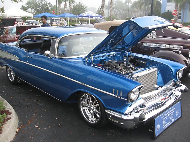 March 22nd -The Cape Caneveral Region/AACA’s “Celebration of Cars Show” at The American Muscle Car Museum drew participants from near and far, including Treasure Coast Region/AACA members. On hand with their vehicles Saturday were Fil & Nancy Ferrauto, Vinnie Cashin & Sarah Palletto, Frank LoVerso & Lynn Larsen, and Sally Franklin & Larry Atkins. This year’s event saluted Ford Thunderbirds, which were judged separately from the other makes. Frank LoVerso & Vinnie Cashin took home Top 25 Awards in the non-Thunderbird category, while Sally Franklin’s ’57 Thunderbird was awarded a 1st Place Trophy. Check out the brief slideshow below for some images from the Melbourne event. To see all 89 images from this year’s show, CLICK HERE.